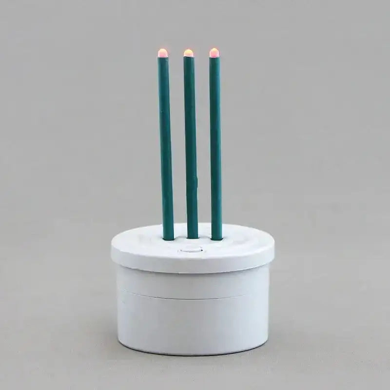 ほのかにゆらぐ光がリアルなLED線香。安心安全の自動消灯機能付き。