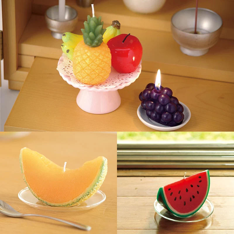 • 話題性を呼ぶローソクです。毎日のお参りが楽しくなります。ローソクが減ってくると、まるで故人様が食べてくれたかのような感覚になります。フルーツはお盆のお供えの定番です。