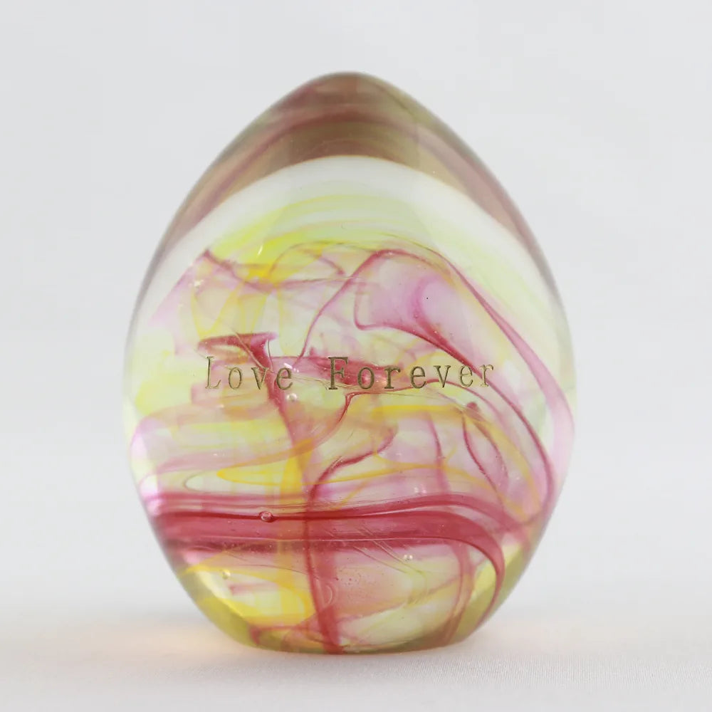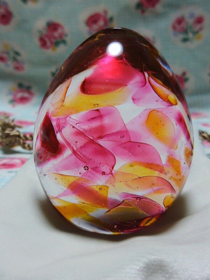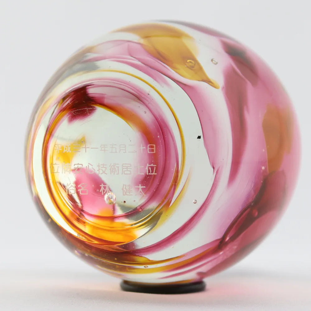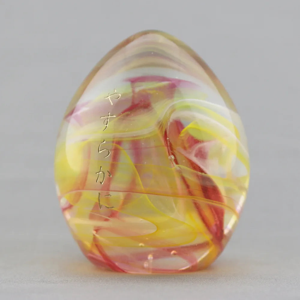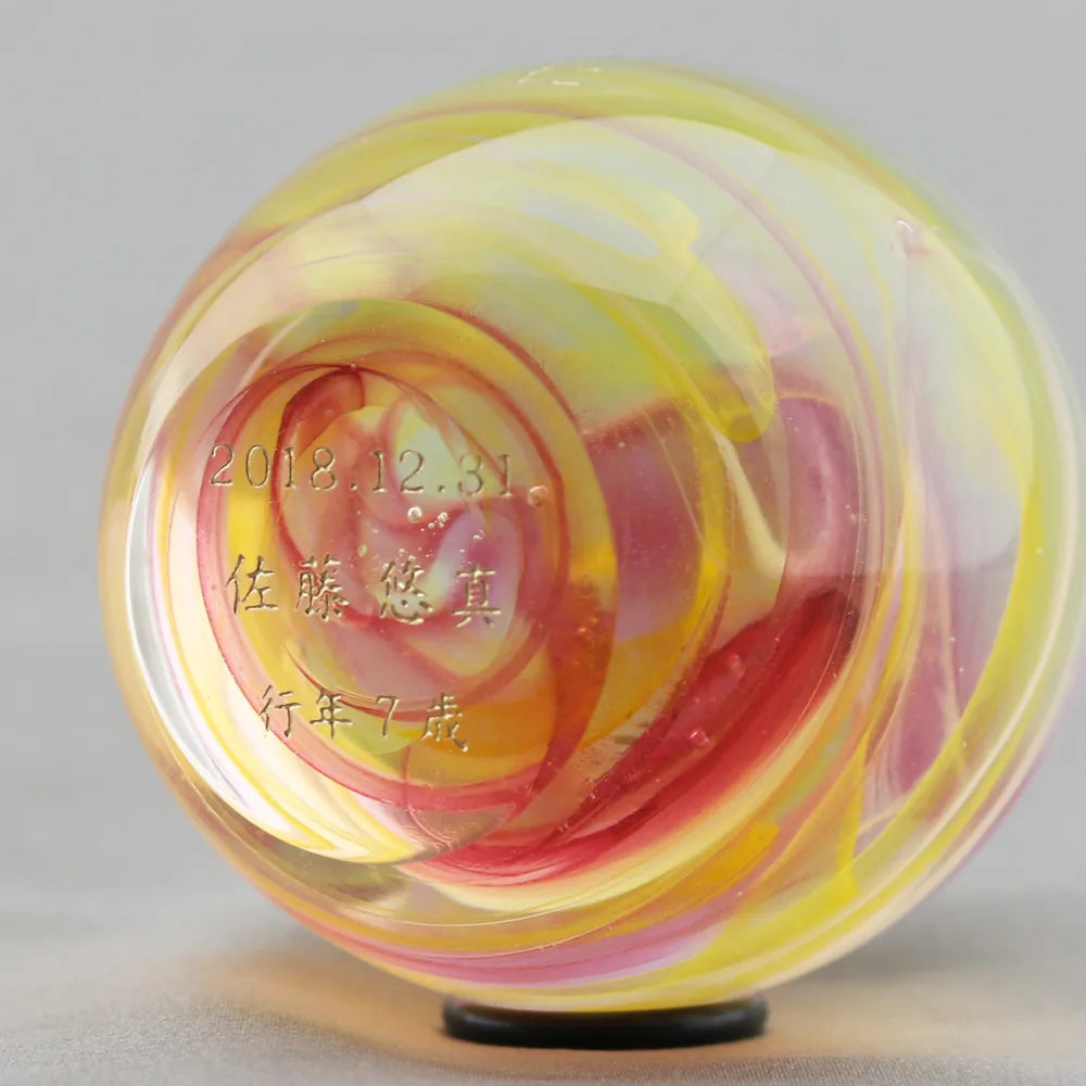 柔らかい暖色の模様で、小さくて可愛らしい、ガラス位牌。
