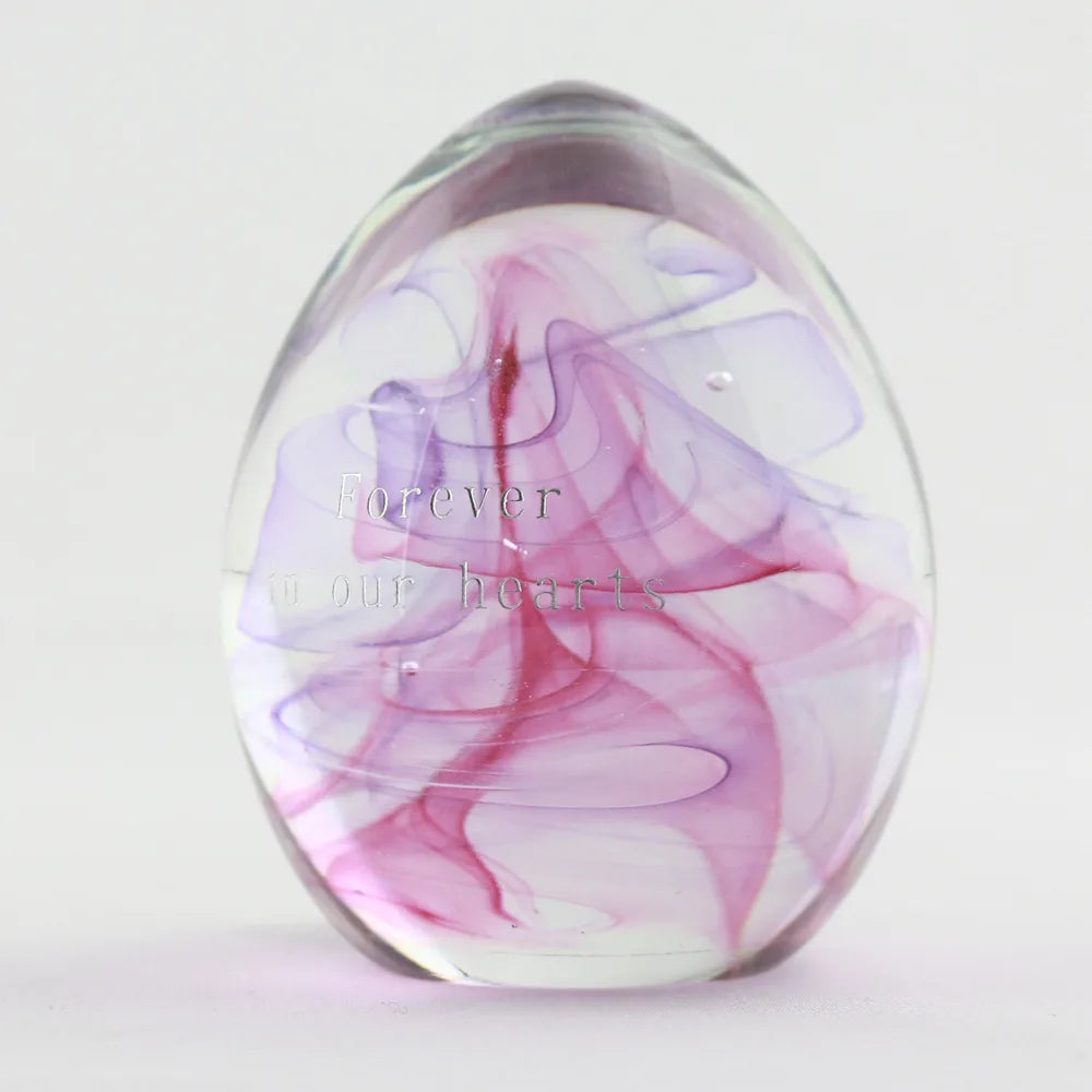 ご購入いただきましたガラス位「oeuf」は、再生・復活・誕生の意味をもつ「たまご」をモチーフにしています。大切な人の魂が宿る場所、大切な人をいつも想い偲ぶ、家族をつなげるお位牌です。お母様もお父様と同じお位牌で並べられましたことで、近くにいることができ幸せかと存じます。