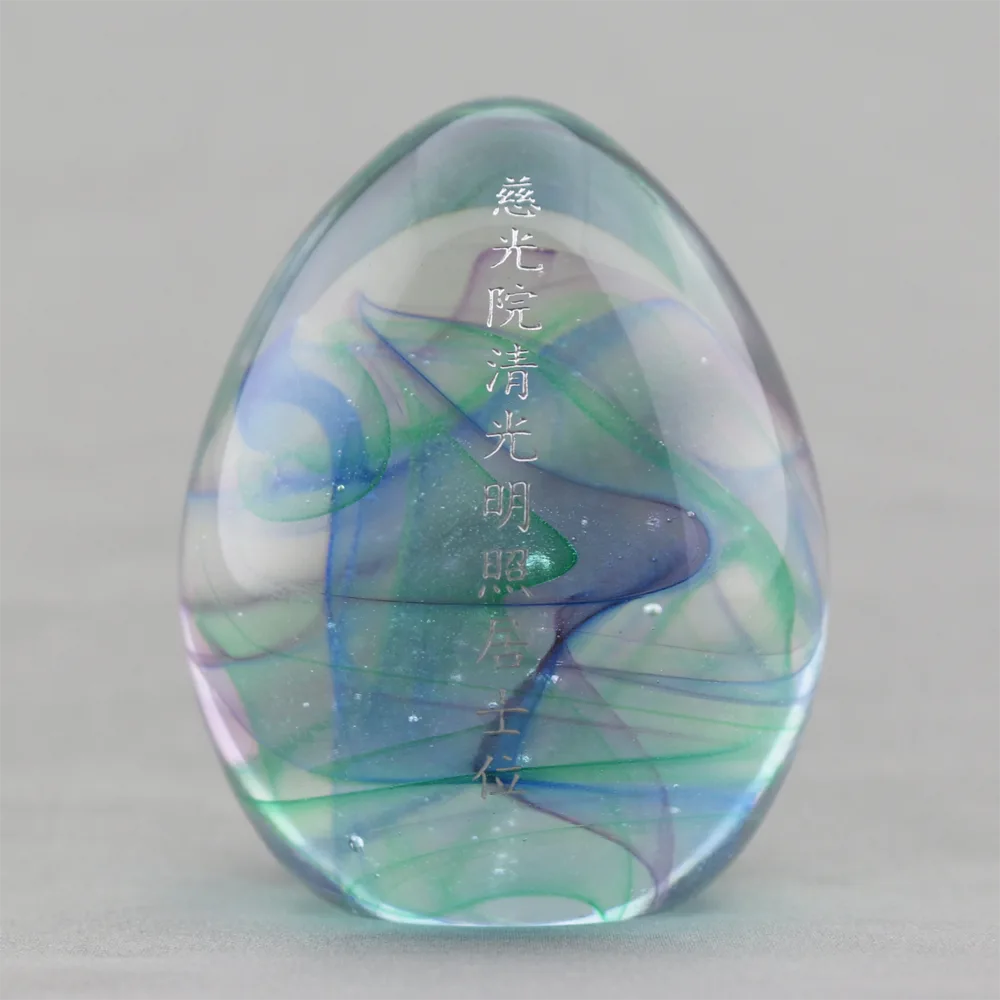 大切な人への想いは十人十色。色んな想いがあり、ひとつとして同じ想いはありません。ガラスも色・形はひとつひとつ異なり、個性のある表情を魅せてくれます。十人十色の想いと唯一無二のお位牌を重ね、ガラス職人さんが想いを込めて製作するガラス位牌。