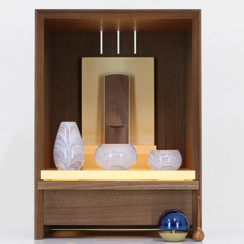 グッドデザイン賞にも輝いた丸いフォルムの可愛いおりん「たまゆらりん」のブルー色です!モダン仏壇・家具調仏壇はもちろん、従来の仏壇にもマッチする人気NO.1のおリンシリーズです。紺碧の海のような鮮やかなブルーはお仏壇の中でも存在感を発揮します。