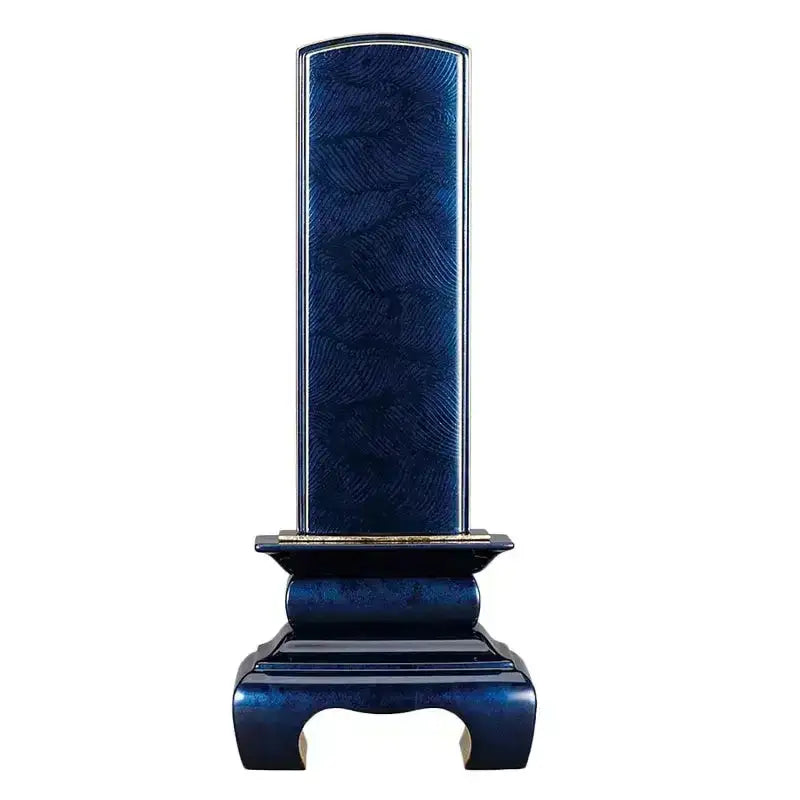 鮮やかなブルーに蒔絵が煌めく最高級位牌「本甲丸 群青」