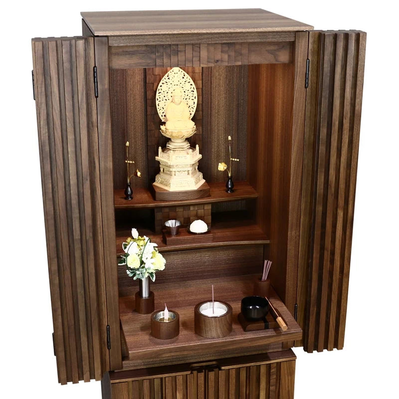 家具の街「府中」で作られたアメリカンウォールナット材の仏壇。高品質なルミエール仕様。
