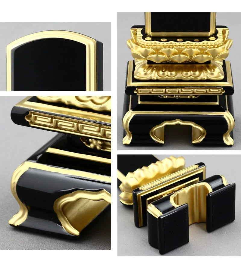 • 特 徴: 国産品 、 呂色仕上げ(最上ランク) 、 金沢産金紛・金箔100%使用 、 本金箔の文字 、 パーツ分解できる構造のお位牌 、 8日以内発送 、 ゴールド文字 、 朱文字 、 白文字