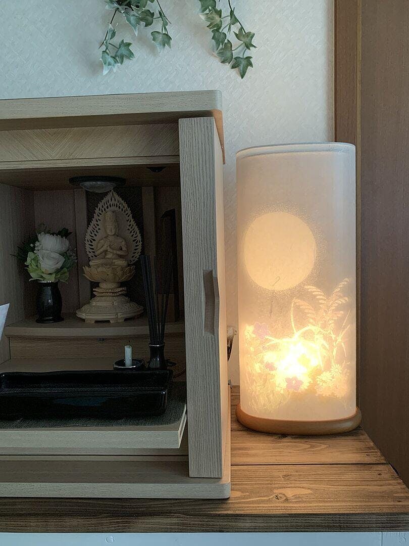 月と花の絵柄に明かりが灯る幻想的な雰囲気が人気な商品で、大切な思い出や故人様への想いを包み込むような光をお届けできたこと、私たちにとっても非常に嬉しいです。
