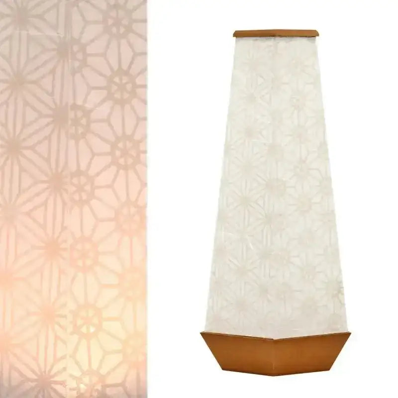 伝統的な組子の絵柄が上品な印象のモダン行灯、コンパクトなサイズで場所を取らずLEDの温かみある光が和紙を通してふんわりと灯ります。お盆の時期だけでなく通年ご使用いただけるデザインの行灯です。