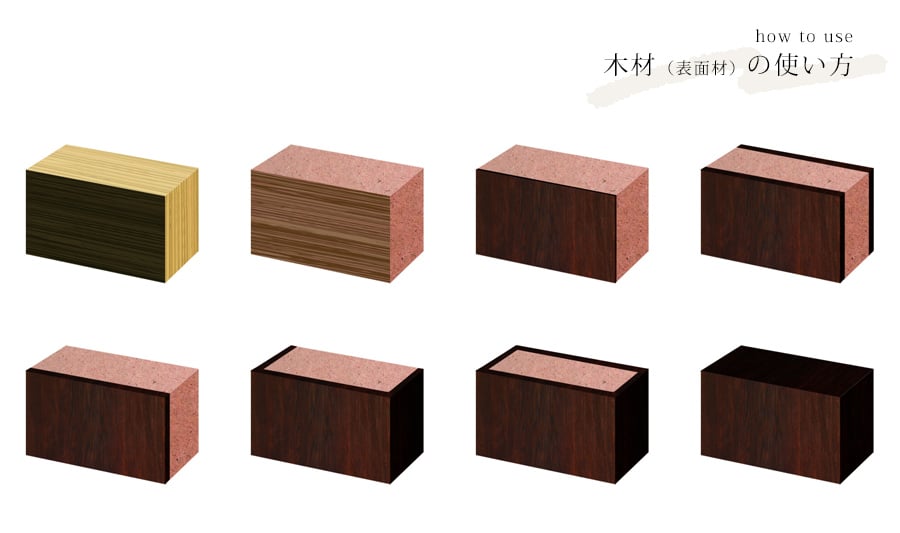 薄板貼り?厚板貼り?無垢材?木材の使用量について。