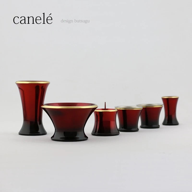 モダン仏具セット カヌレ ワイン【3点セット・6点セット】:【小サイズ6点セット】