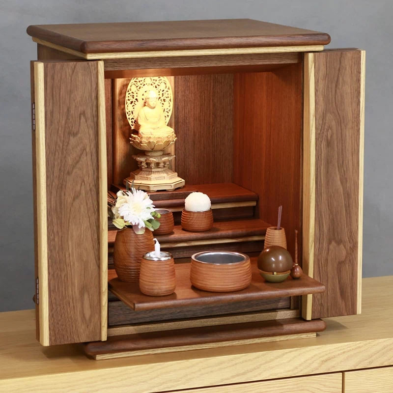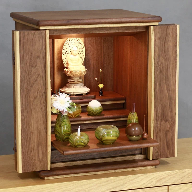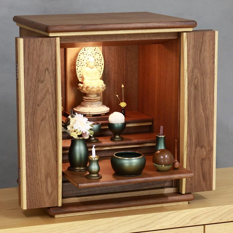 国産材のくるみと栗の無垢材をふんだんに使用した国産仏壇。