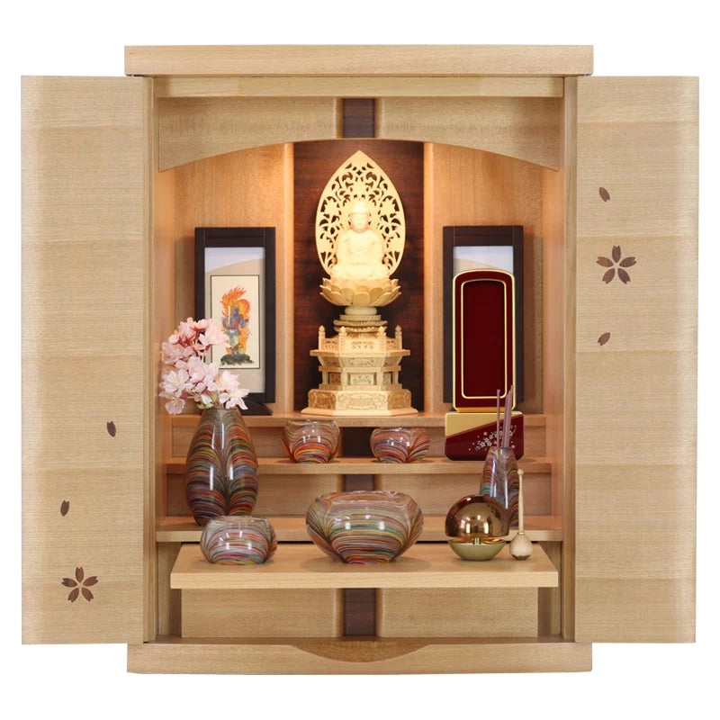 こちらの商品は5年間の製品保証が付きます。自然に使用していて発生した問題に関しては、すべて無料で修理を行わせて頂いております。その際のご依頼は「お仏壇の5年保証期間内の修理依頼【0円修理】」のページよりお申込み下さい。