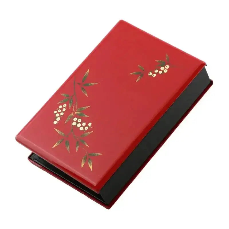 絵柄の南天は、白い花をつけた後に真っ赤な実をつけます。この様子が、愛情が高まっているように見えたことから「私の愛は増すばかり」という花言葉をもっています。