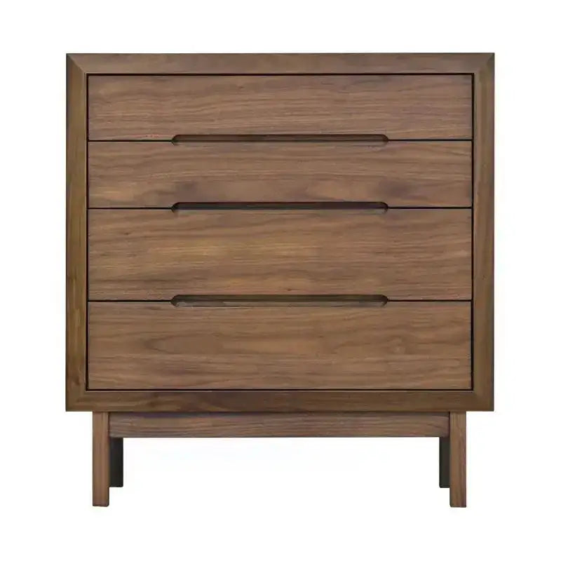 ウォールナットの木目を活かしたシンプルなデザインのチェスト。