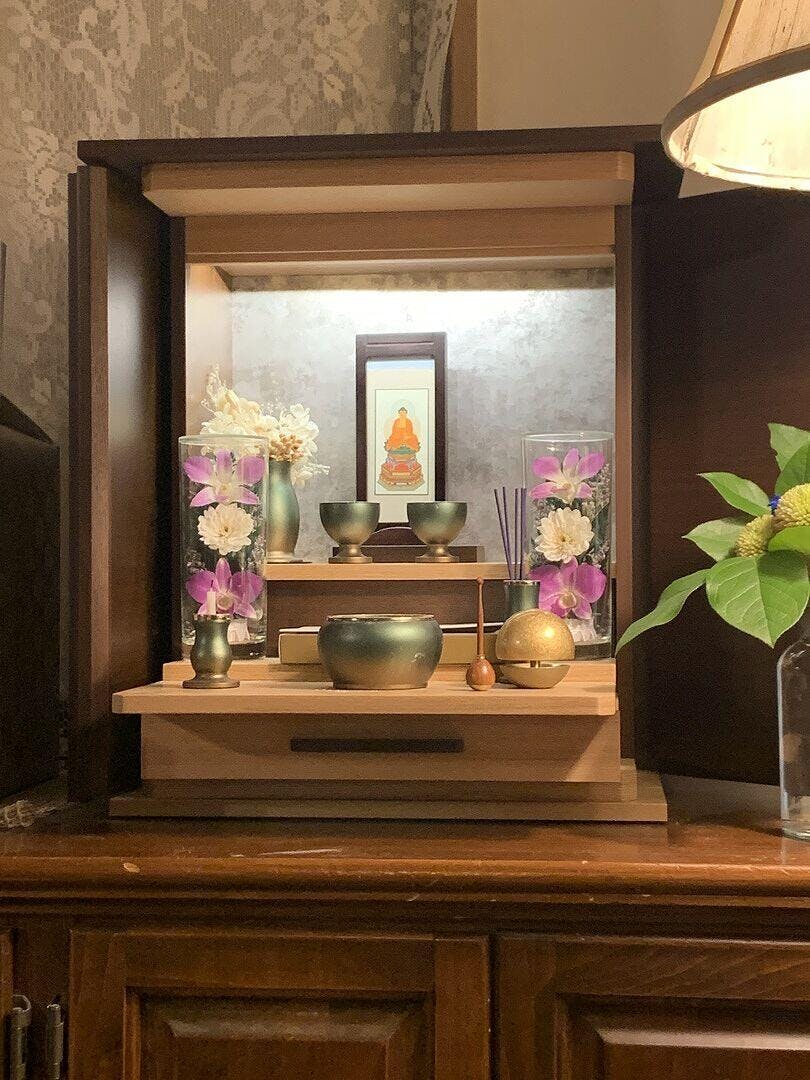 カート前に選択肢がありますので、下記のアイテムとお仏壇を一緒に購入頂くことが可能です。
