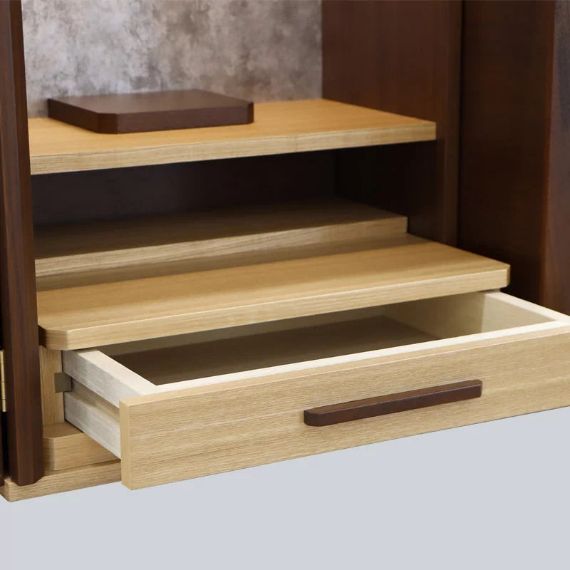 スライド式内部段の下には引出しが内蔵され、故人様の思い出の品やお仏壇周りの仏具などをお納めいただけます。
