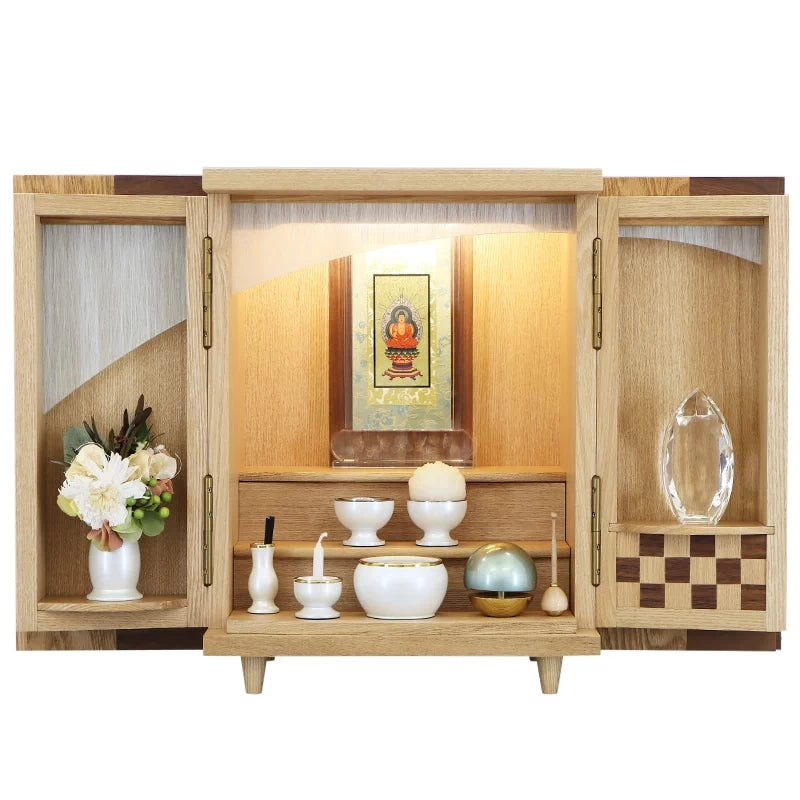仏具によって荘厳(しょうごん)して初めてお仏壇としての意味を持ちます。仏具はご本尊を供養するのと共に、ご先祖様や亡き人を供養するためのものです。