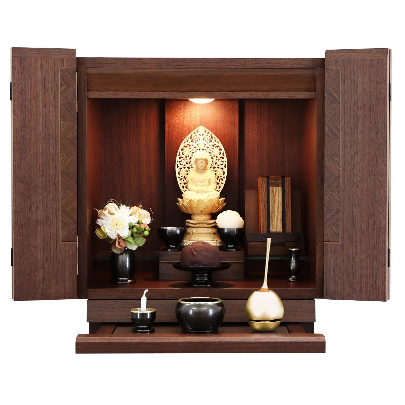 仏具によって荘厳(しょうごん)して初めてお仏壇としての意味を持ちます。仏具はご本尊を供養するのと共に、ご先祖様や亡き人を供養するためのものです。