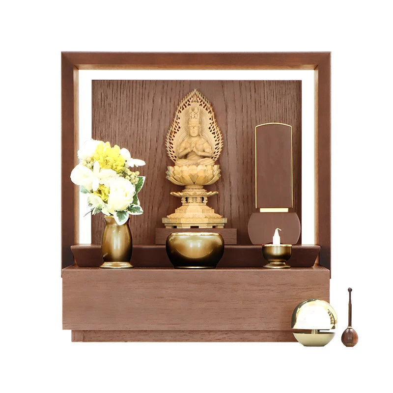 モダン仏具セット アルミムクmini ライトブラウン:3点セット / 不要