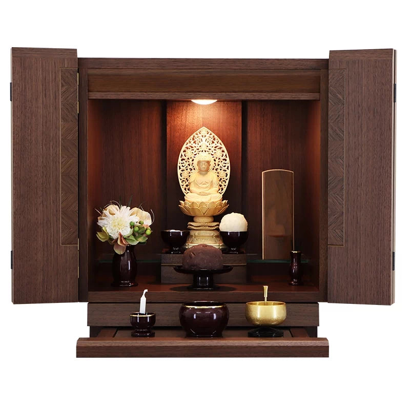仏壇に合わせやすい定番ワインカラーの供物台。