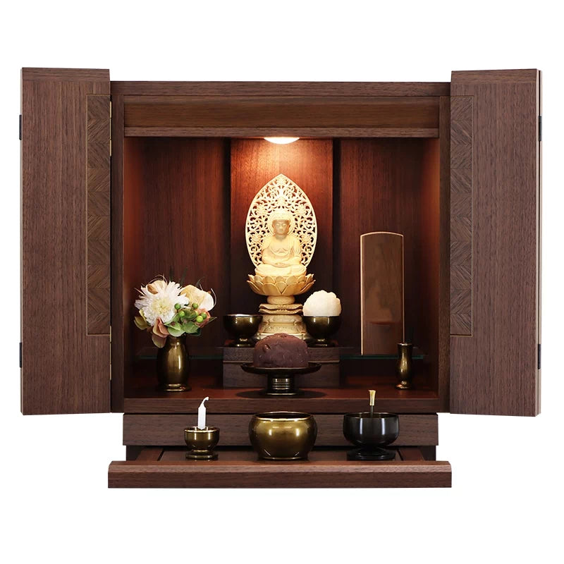 重厚感のあるパール調のライトブラウンは、お仏壇をスタイリッシュに演出します。