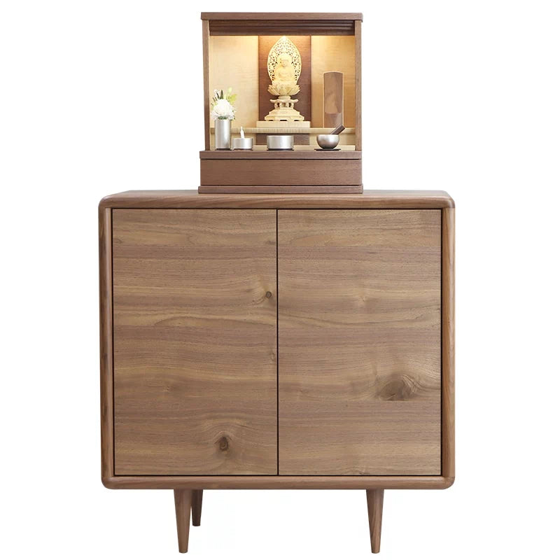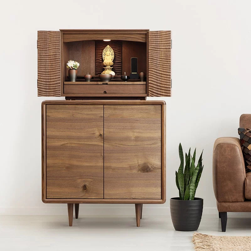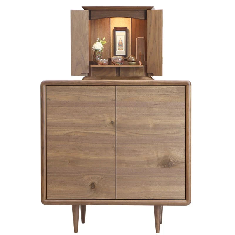 ウォールナットの質感とあたたかな木目がお仏壇や仏具とも調和します。