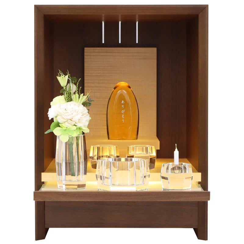 また、素敵なお写真もお送り頂き感謝申し上げます。琥珀色のガラス位牌、絶妙にマッチしており、この素敵な空間に故人様も安らかなお気持ちでいられるかと思います。