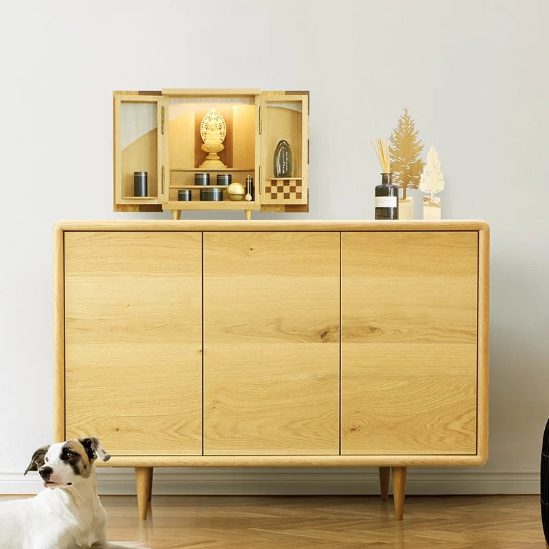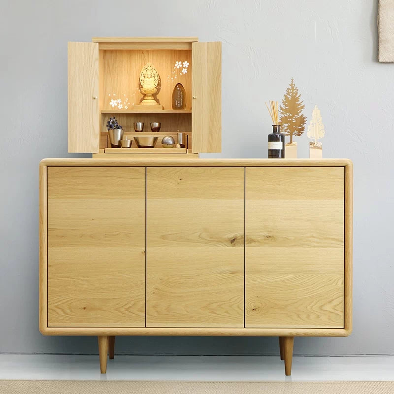 ホワイトオークの木目を活かした北欧テイストのサイドボード。収納力抜群で仏壇台としても。