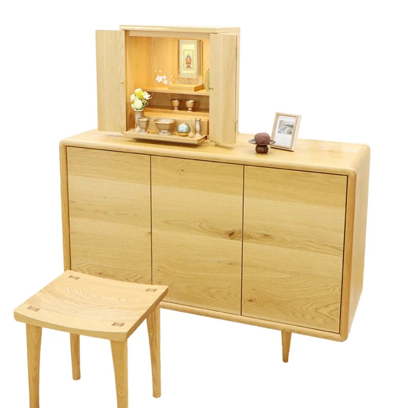 お仏壇を置いてお参りするのにちょうどいい大きさで、お部屋のインテリアにはもちろん、仏壇台としてリビングに置いても違和感のないデザインです。