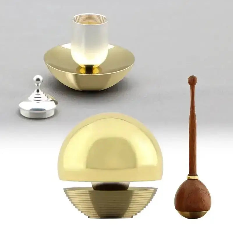 ミニ骨壺が一体となった「たまゆらりん」。鐘と台が全てゴールド色の煌びやかなデザイン。