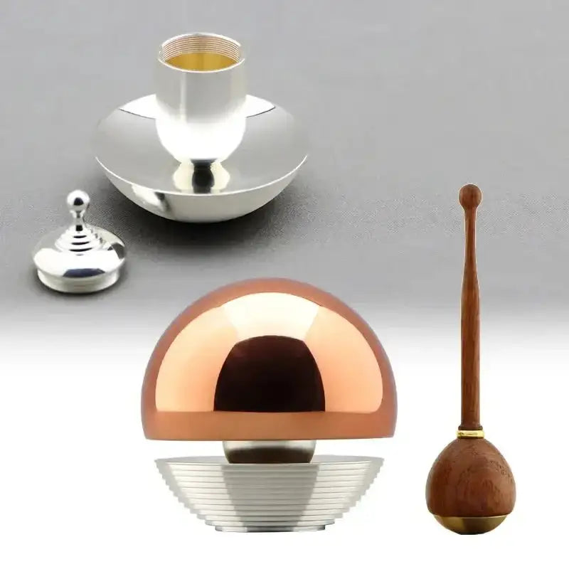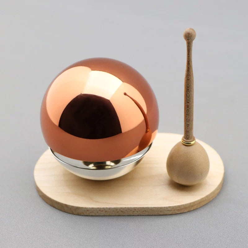 通常のおリンはリン本体を全面で支えている構造に比べ、たまゆらリンはリン本体を1点のみで支えることで音がとても伸びます。リンの大きさは1.8寸となり、高音の長く美しい音色を奏でます。