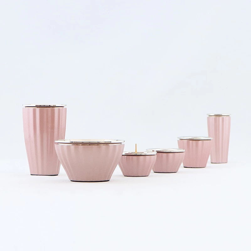 かわいらしいピンクとシルバーの縁取りの組み合わせはモダンな印象ですが、プリーツのように動きのあるフォルムがやさしい印象にしています。