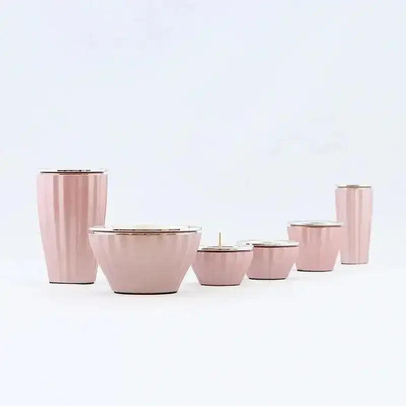 ピンクとシルバーの組み合わせはかわいらしい印象の仏具セット。