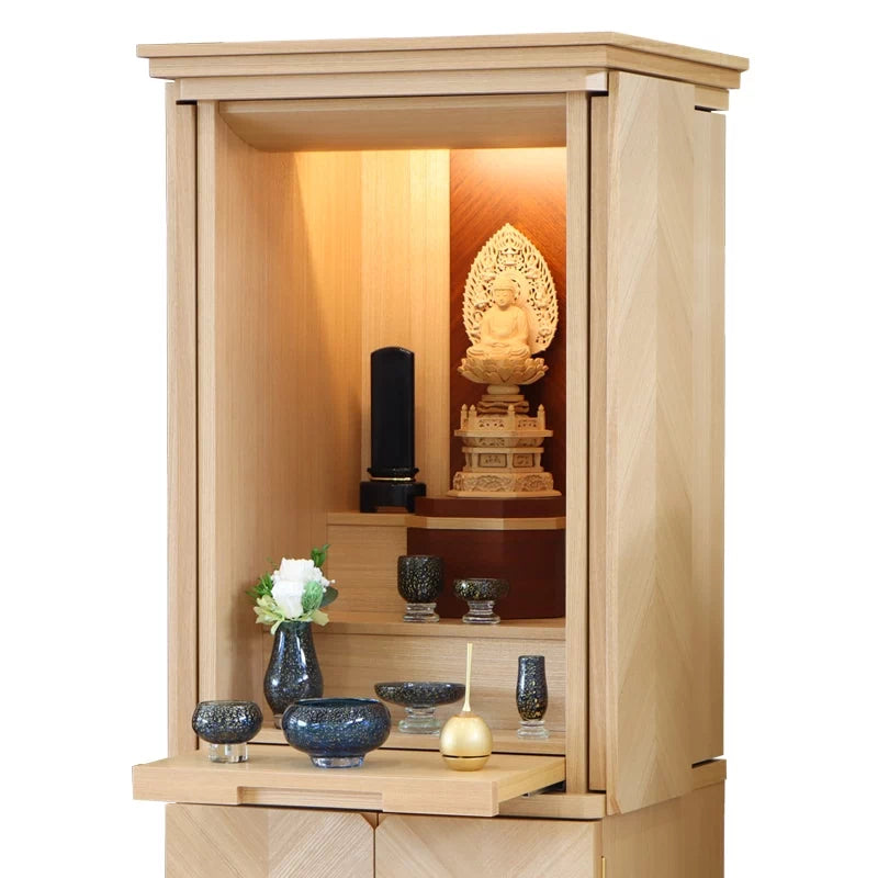 こちらの商品は5年間の製品保証が付きます。自然に使用していて発生した問題に関しては、すべて無料で修理を行わせて頂いております。その際のご依頼は「お仏壇の5年保証期間内の修理依頼【0円修理】」のページよりお申込み下さい。