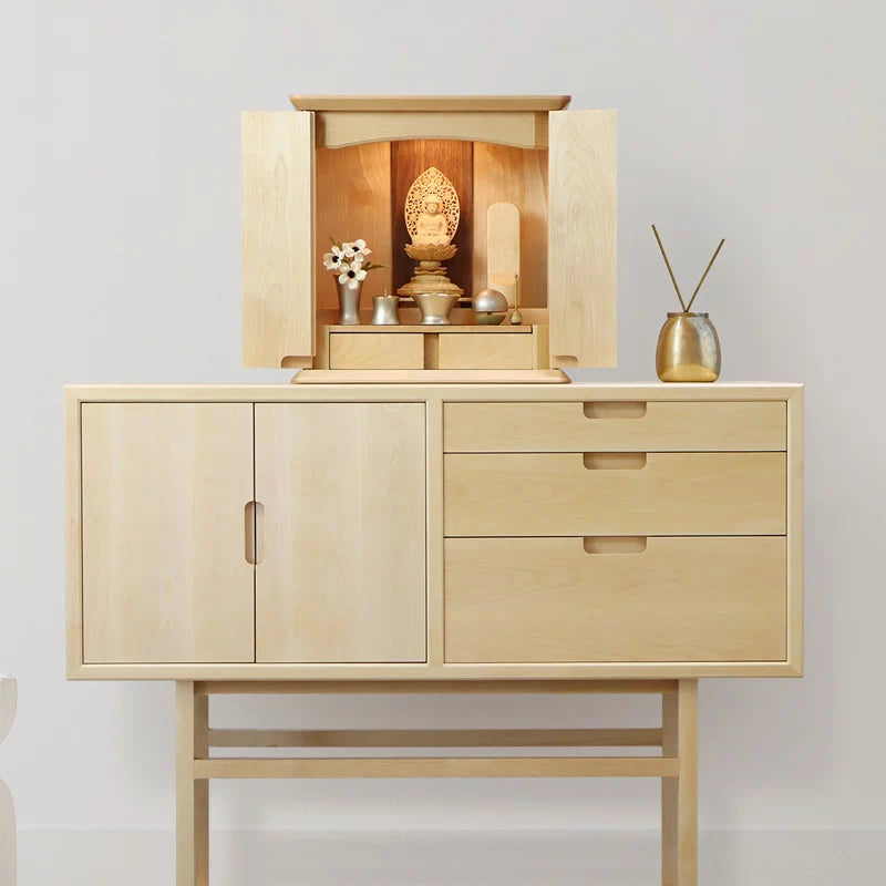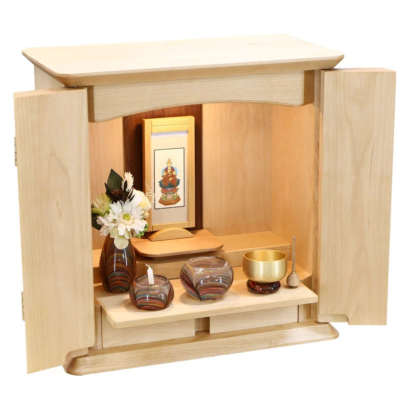 メープルよりも木目の安定したバーチ材を80%以上無垢材で使用したモダン仏壇。天然木そのままの風合いを感じて頂けます。