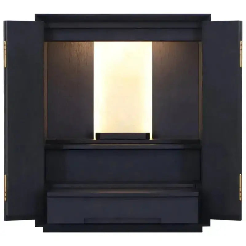 黒でもない、少し灰色が混ざったような絶妙な墨黒色のモダン仏壇。背面は月の光を箔で表現し、和室でも洋室でもマッチします。