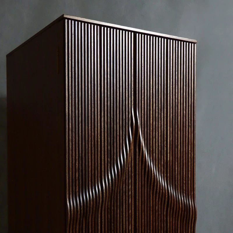 銘木ニューギニアウォールナットのダイナミックな木目が他のお仏壇にはない力強さを感じさせる「ヴァーグ」。寄せては返すさざなみをイメージした扉の格子のデザインと迫力のある木目が相まって、祈りの空間にふさわしい荘厳なな佇まいを創ります。和洋問わず現代のお部屋に馴染む、ルミエールオリジナルの国産仏壇です。