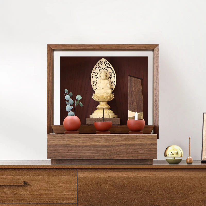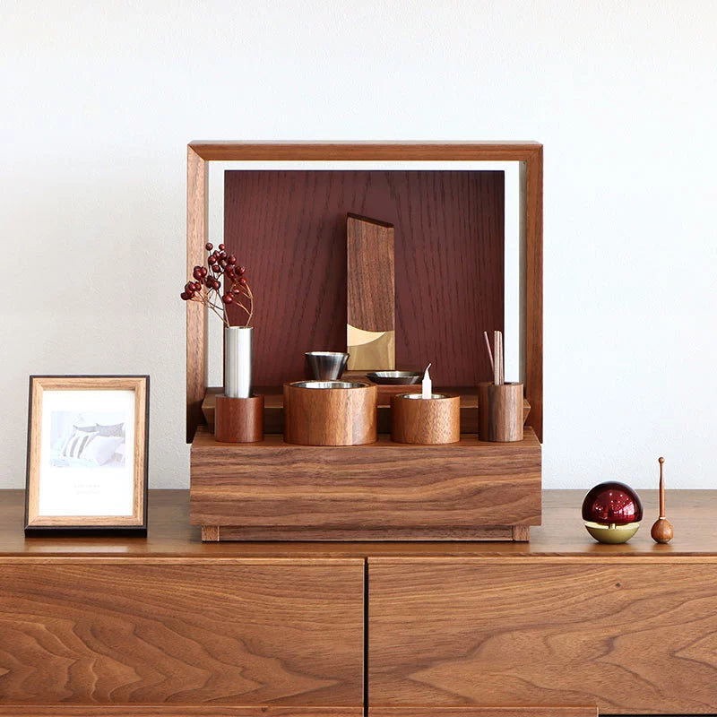 故人様を偲んで囲う、大切な祈りの場所。ミニ仏壇「KAKOI」は、故人様と家族の絆にそっと寄り添います。