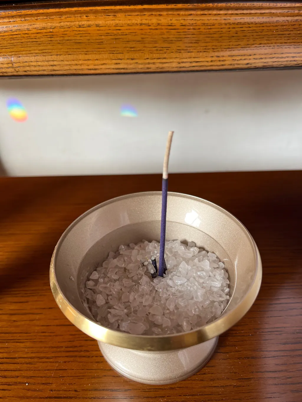 透明感のある水晶の天然香炉石。線香の灰で汚れてきたら洗って何度でも使用できます。