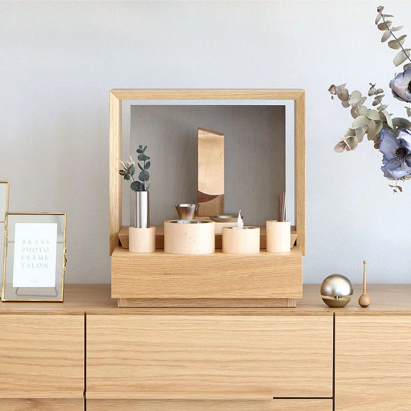 故人様を偲んで囲う、大切な祈りの場所。ミニ仏壇「KAKOI」は、故人様と家族の絆にそっと寄り添います。