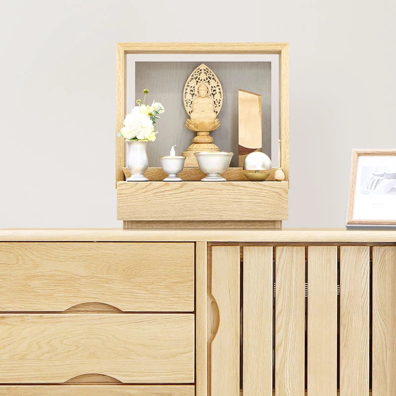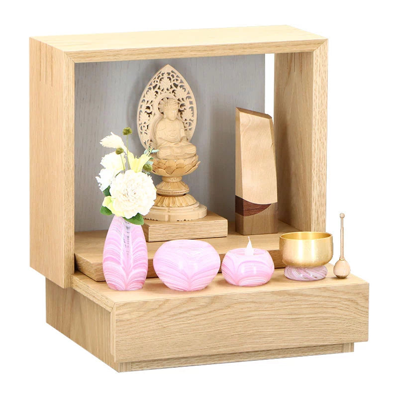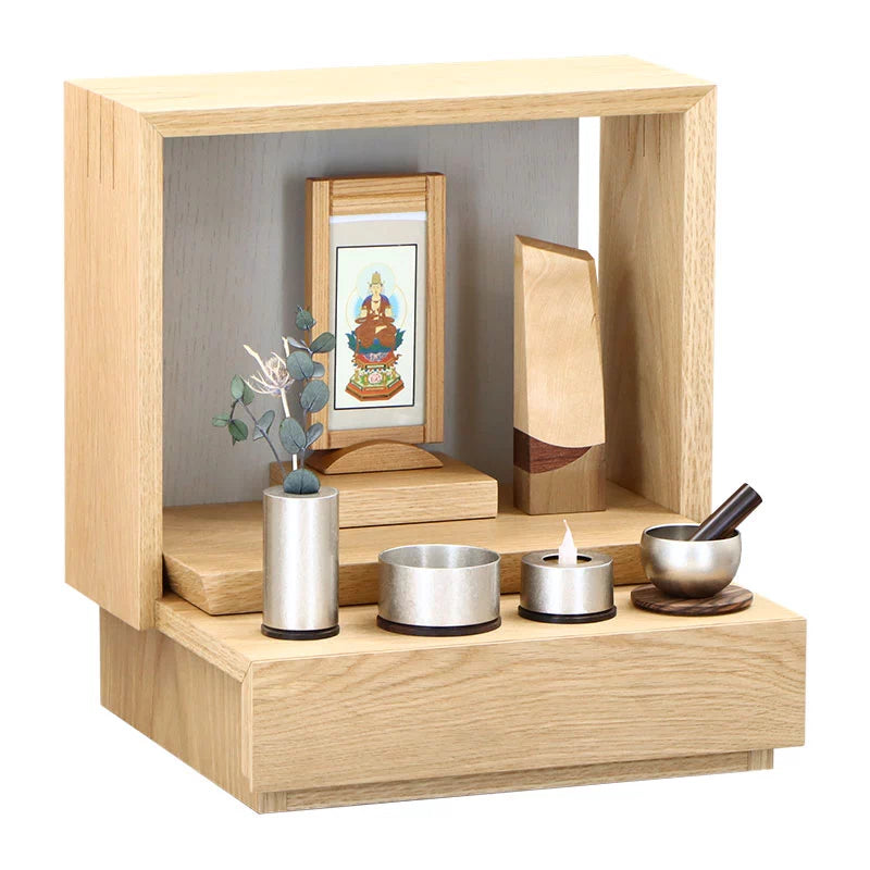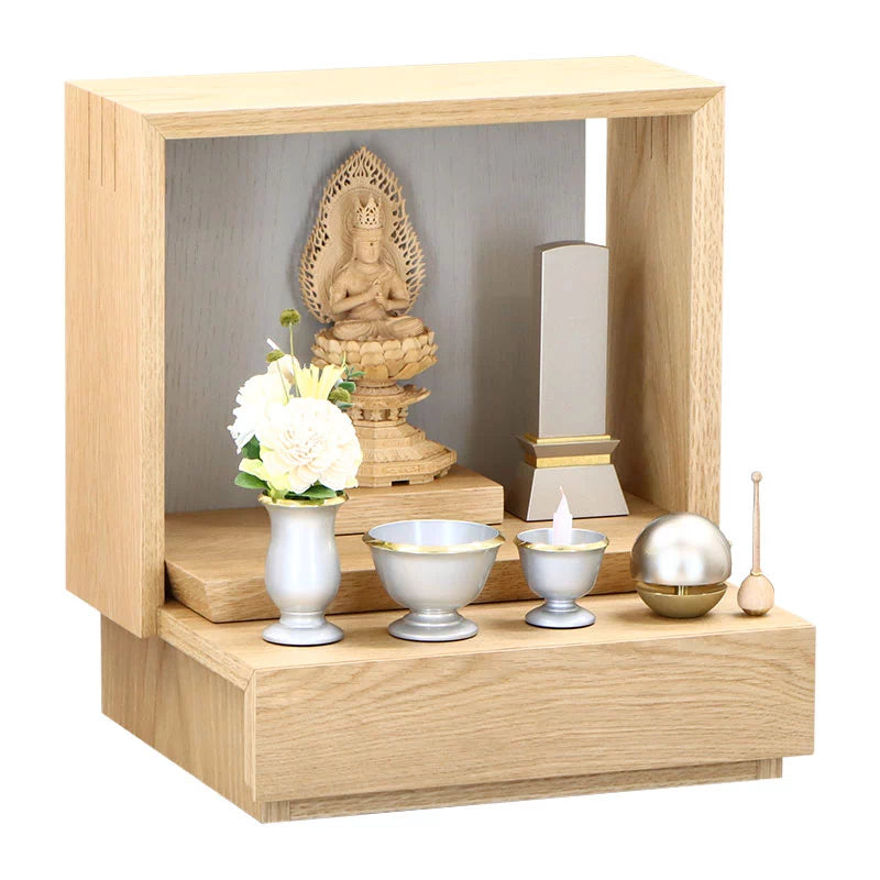 当店オリジナルの国産ミニ仏壇。オークにグレーがアクセントのシンプルモダンなデザイン。