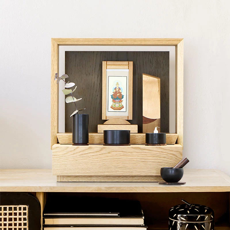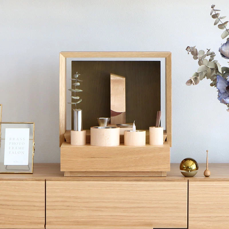 故人様を偲んで囲う、大切な祈りの場所。ミニ仏壇「KAKOI」は、故人様と家族の絆にそっと寄り添います。