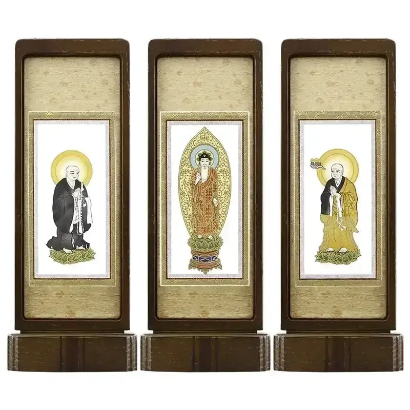 スタンド型掛け軸 京 ウォールナット色 中サイズ 【各宗派対応】:3幅セット / 浄土宗