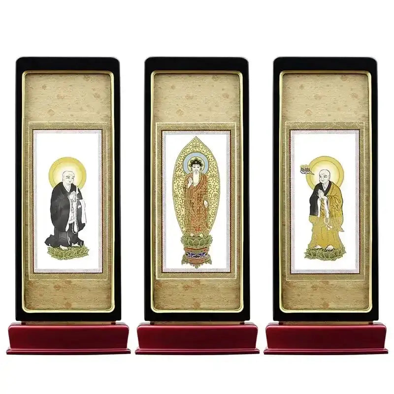 スタンド型掛け軸 京 黒玉虫色 中サイズ 【各宗派対応】:脇侍2枚セット / 臨済宗妙心寺派