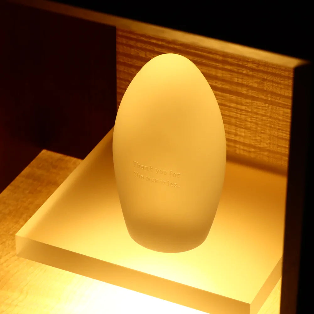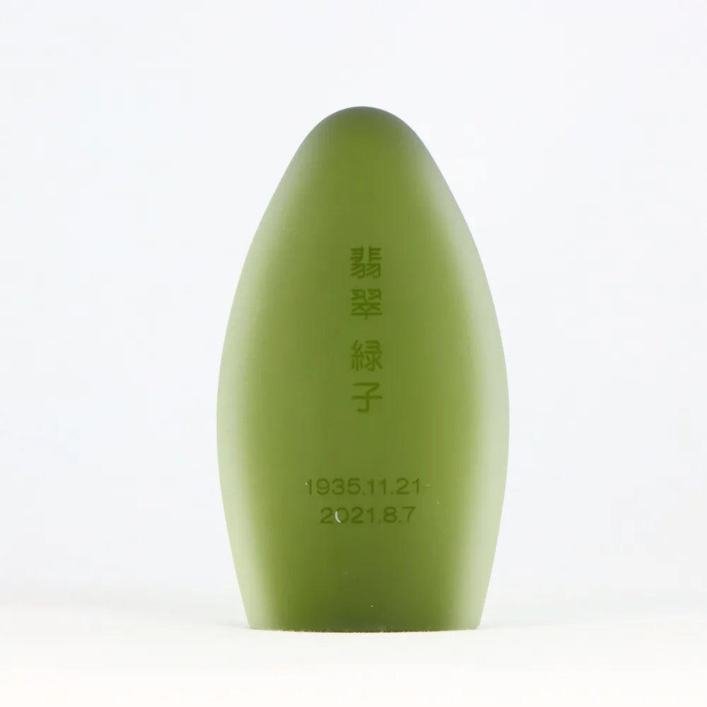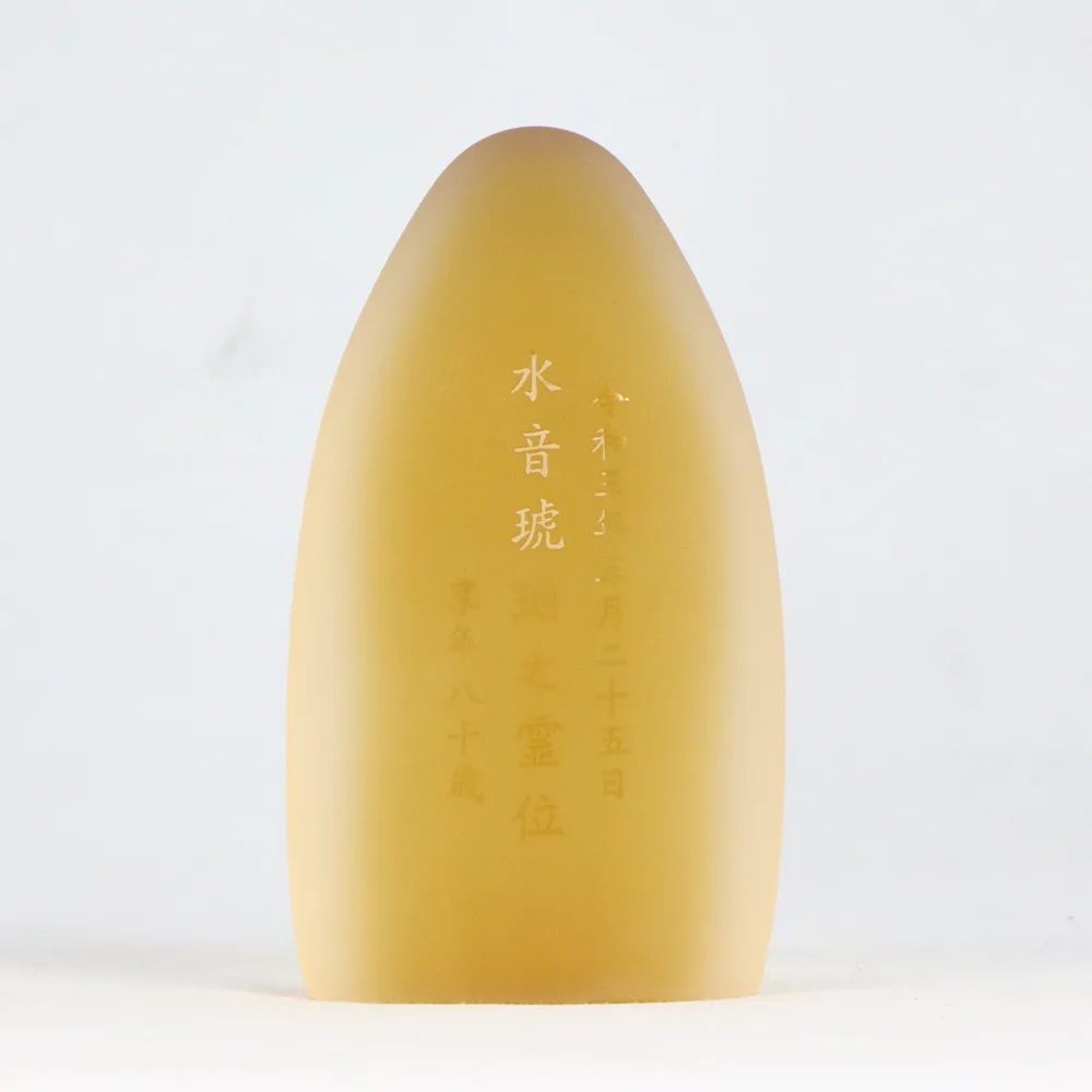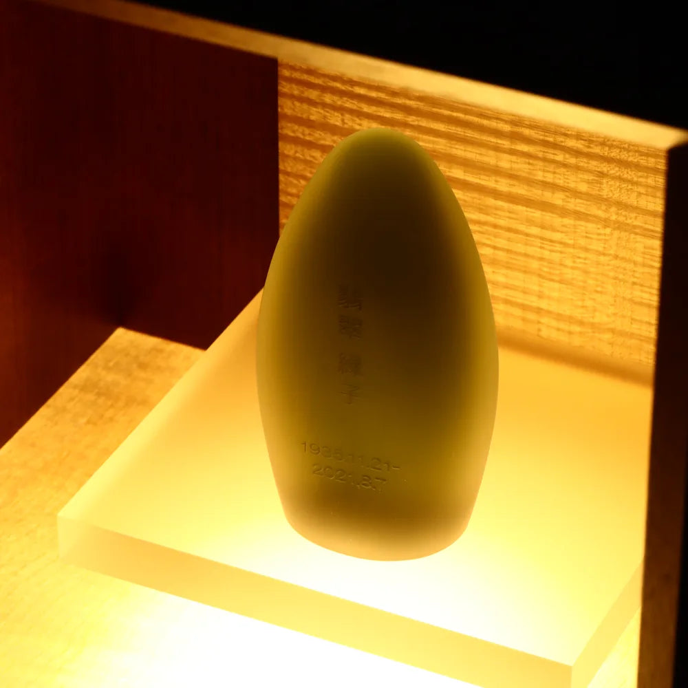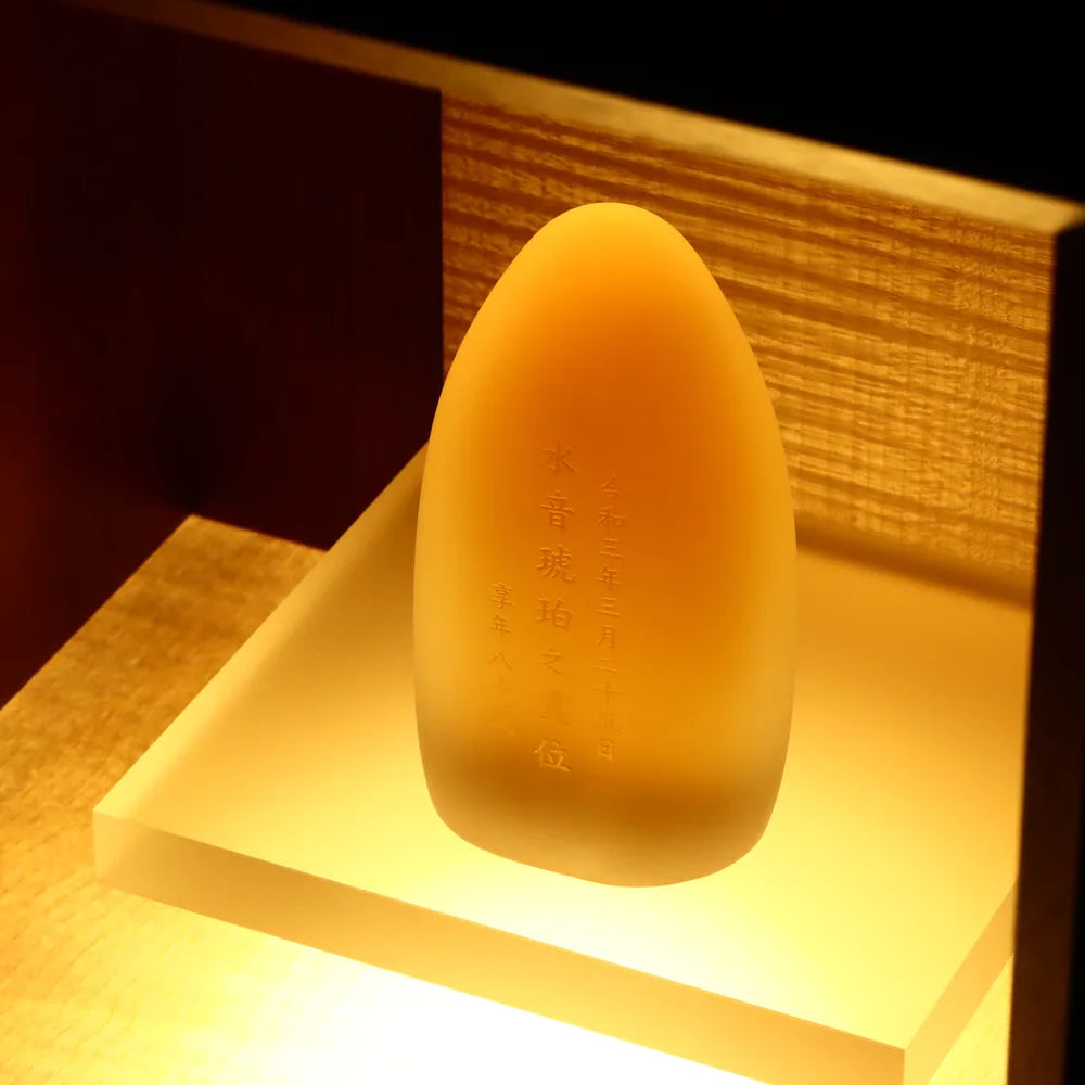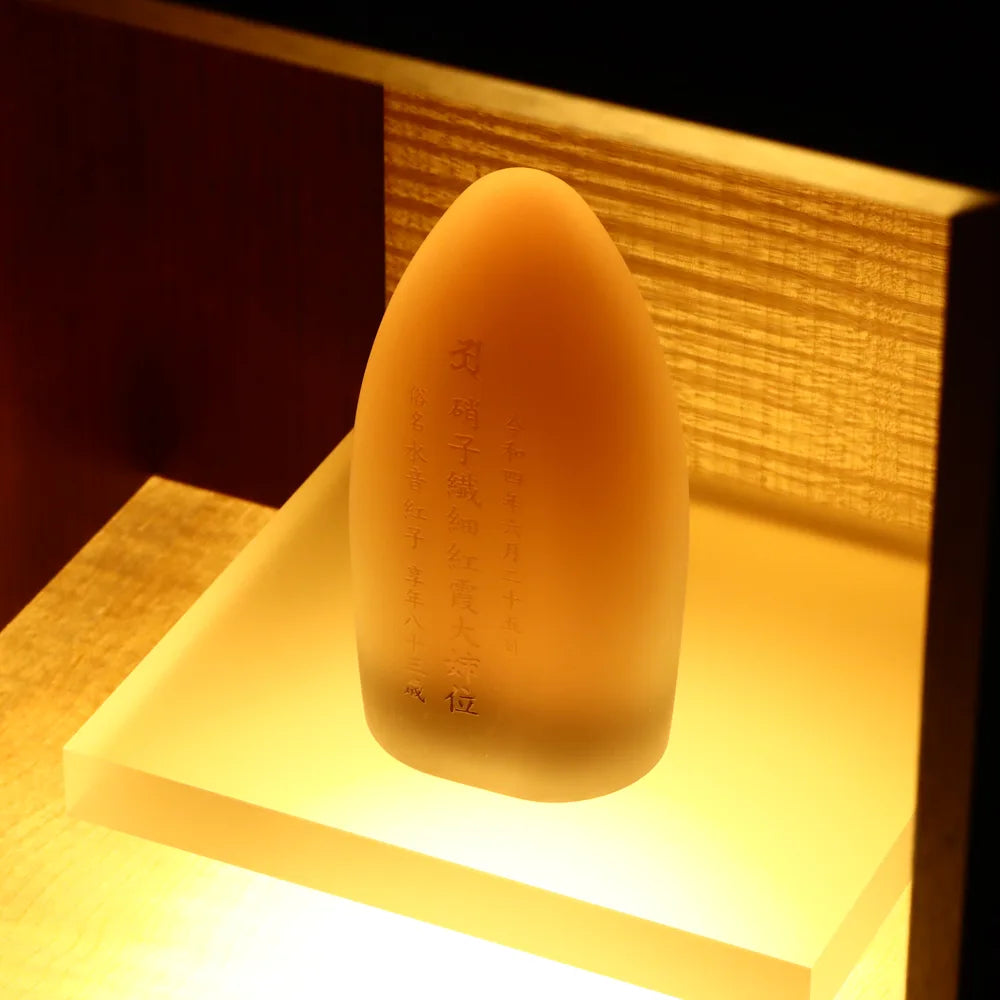 優しい乳白色のガラス位牌。青森県伝統工芸「津軽びいどろ謹製」