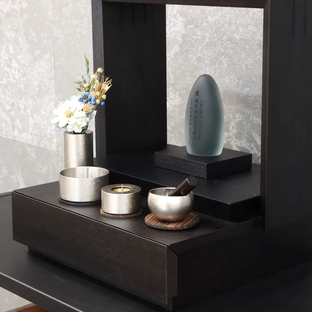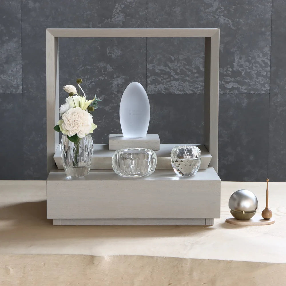 優しげな乳白色の『透色』は、お仏壇にはもちろんリビングや寝室など日々の暮らしの中にも置けるシンプルモダンな佇まいです。