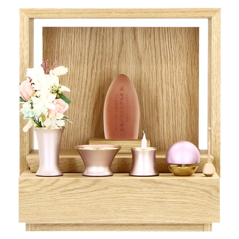 落ち着いたピンクカラー『薄紅』は、お仏壇にはもちろんリビングや寝室など日々の暮らしの中にも置けるシンプルモダンな佇まいです。