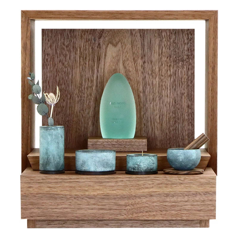 爽やかなスカイブルーの『青磁』は、お仏壇にはもちろんリビングや寝室など日々の暮らしの中にも置けるシンプルモダンな佇まいです。