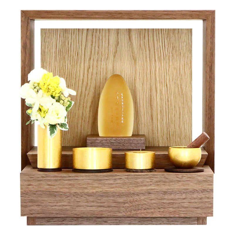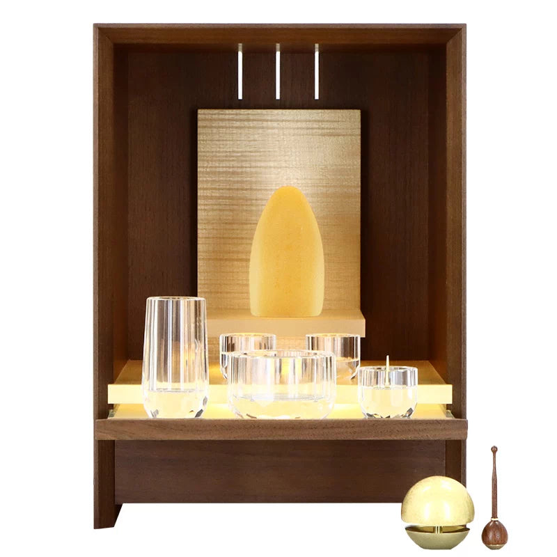 ライトオレンジがあたたかい『琥珀』は、お仏壇にはもちろんリビングや寝室など日々の暮らしの中にも置けるシンプルモダンな佇まいです。