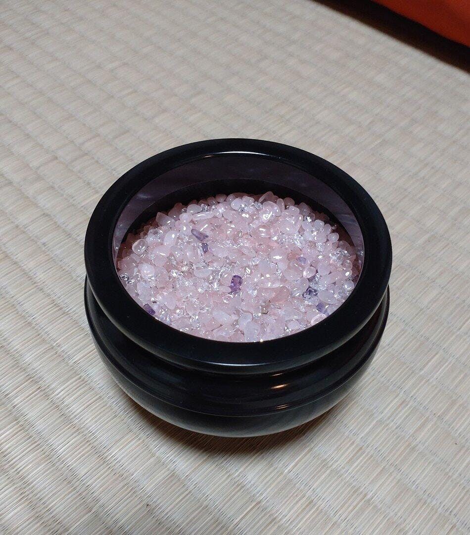 愛とやさしさの象徴のローズクォーツの香炉石。線香の灰で汚れてきたら洗って何度でも使用可能。