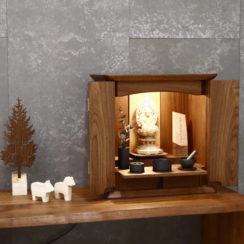 寄木の位牌「森音」は、そんな形式に囚われないあたたかみのある祈りの空間を演出します。